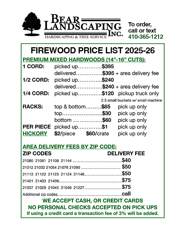 Bear Landscaping, Hardscapes & Tree Service is a locally-owned and operated company based in Millersville, Maryland 21108. We specialize in every aspect of tree removal, storm damage clean-up, landscaping, hardscapes, and tree care services. We can cover everything your outdoor space could need.